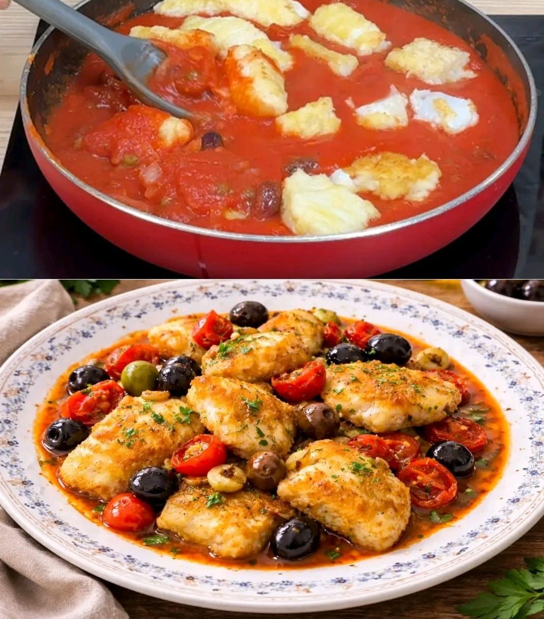 Un piatto profumato, rustico e ricco di gusto, dove il sapore delicato del baccalà si unisce alla freschezza del pomodoro e alla sapidità di olive e capperi.