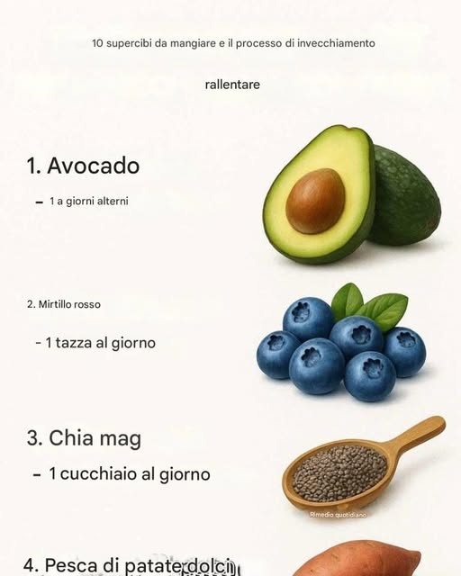 Nella nostra ricerca dell’eterna giovinezza, spesso sottovalutiamo il potere dell’alimentazione come mezzo naturale per mantenere la nostra vitalità e rallentare il processo di invecchiamento. Sebbene la fonte della giovinezza possa essere un mito, la scienza ha dimostrato che alcuni alimenti, noti come supercibi, possono avere un impatto significativo sulla nostra salute e sul nostro aspetto, aiutandoci ad apparire e sentirci più giovani. Questi alimenti nutrienti sono ricchi di antiossidanti, vitamine e minerali che proteggono il nostro corpo dai danni, promuovono la rigenerazione cellulare e riducono l’infiammazione, contribuendo a un aspetto più giovane. In questo articolo, esploriamo dieci supercibi noti per le loro proprietà anti-invecchiamento. Incorporandoli nella tua dieta, puoi sfruttare i loro potenti nutrienti per rallentare naturalmente l’invecchiamento e supportare la tua pelle, il tuo cervello, il tuo cuore e il tuo benessere generale. Dalla cremosa ricchezza dell’avocado ai colori vivaci della curcuma, ognuno di questi supercibi offre benefici unici che possono aiutarti a tornare indietro nel tempo in modo naturale.