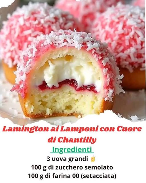 🍰 Lamington ai Lamponi con Cuore di Chantilly