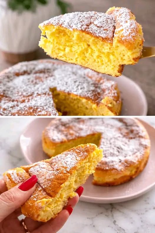 Ha una consistenza particolare, a metà tra una torta soffice e un dolce più umido e delicato, quindi non aspettarti la classica fetta asciutta da colazione. Qui il bello è proprio la morbidezza
