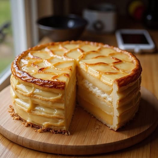 la torta di crêpe è una creazione di pasta sfoglia realizzata sovrapponendo sottili crêpe ripiene di crema, frutta o caramello. In questa versione, le mele caramellate aggiungono un tocco rustico e caldo, mentre il caramello lega i sapori con una dolcezza irresistibile. Il risultato è un dessert che si scioglie in bocca, profumato e visivamente elegante, che può essere gustato sia caldo che freddo.